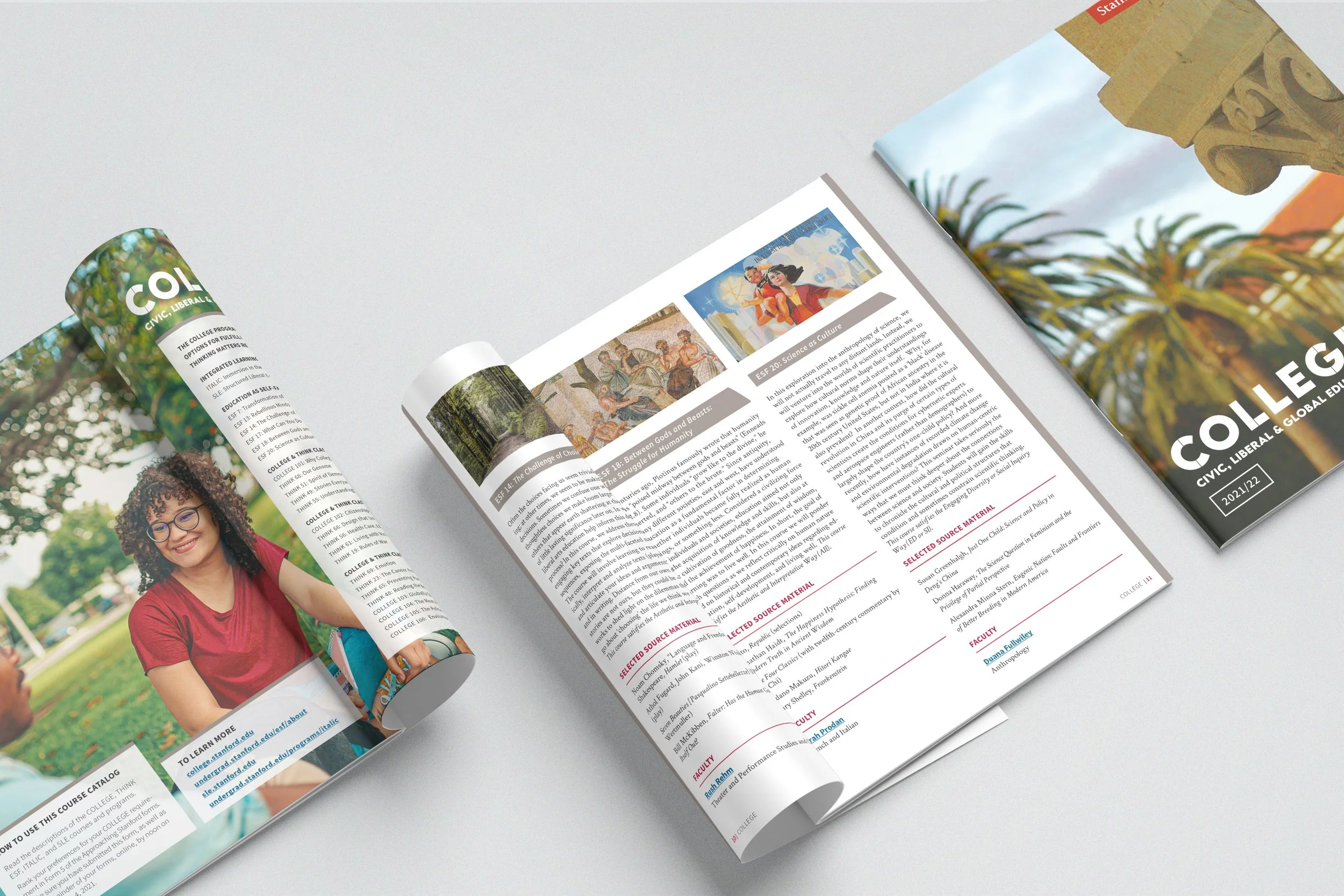 In house graphic designer at Stanford University. Created all marketing collateral for the undergraduate school including all print materials for student/faculty programs and events. I worked collaboratively with several departments including Academic Advising, Admissions, Study Abroad Program (BOSP), and more. Presented creative work that leads department clients through the benefits and varied considerations of recommended creative solutions. I was responsible for the design of several large publications such as admissions packet materials, official Stanford handbooks for entering students, and all orientation handbooks. I also aided in creating identities for student programs that adhere to the Stanford brand guidelines.
